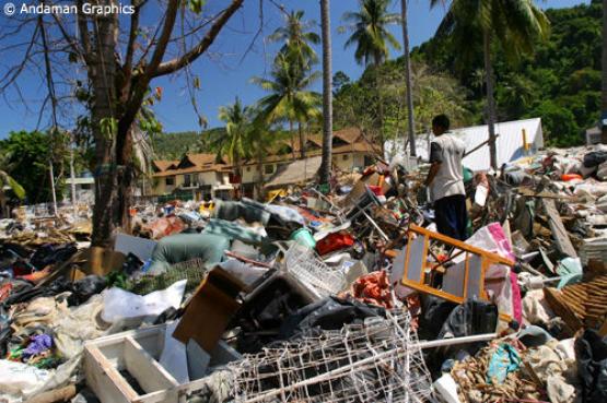 Phi Phi Island Fotos nach dem verheerenden Tsunami. Die Insel zählt zu den schönsten in Thailand. Doch Phi Phi Island braucht noch Zeit, um die Wunden der Vergangenheit heilen zu lassen. Zu groß waren die Zerstörungen durch die Flutwelle. Bilder vom März 2005.
