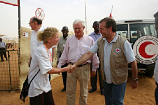 Foto | Foto 4 von 41 | Foto  |  | | Die DRK-Delegierte begrüßt Jan Hofer und Dr. Seiters im Flüchtlingslager As Salam |