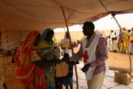 Foto | Foto 38 von 41 | Foto  |  | El Fasher in Darfur: Ein freiwilliger Helfer gibt eine Tüte mit Proteinriegeln an eine Mutter. Dies reicht einem Kind für eine Woche, um es vor Unterernährung zu schützen