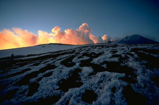 Der höchste Vulkan Europas spuckt Feuer und Lava. Fotos vom Ausbruch: Asche, giftige Gase, Kohlendioxyd, Schwefel. Eine riesige Rauchwolke steht über dem Ätna - Gut zu erkennen am Satelliten - Bild. 1000ende Grad heisse Lava ergiesst sich ins Tal. Noch sieht es nicht so aus, als wenn sich der Vulkan beruhigt.