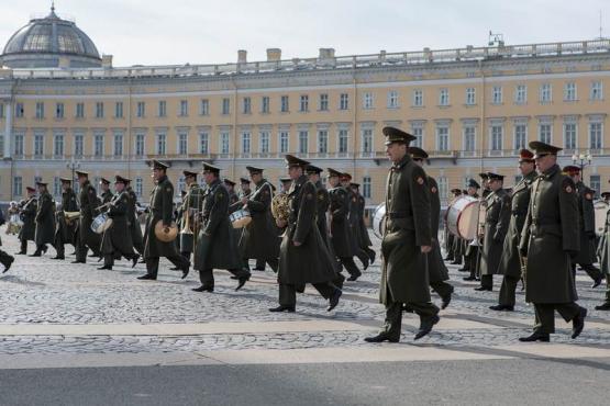 Proben für den 9.5. (Kriegsende) auf dem Platz vor der Eremitage.