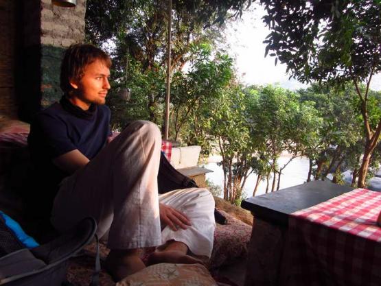 Genießen eines herrlichen Sonnenaufgangs vor traumhafter Flusskulisse und Warten auf das Frühstück.